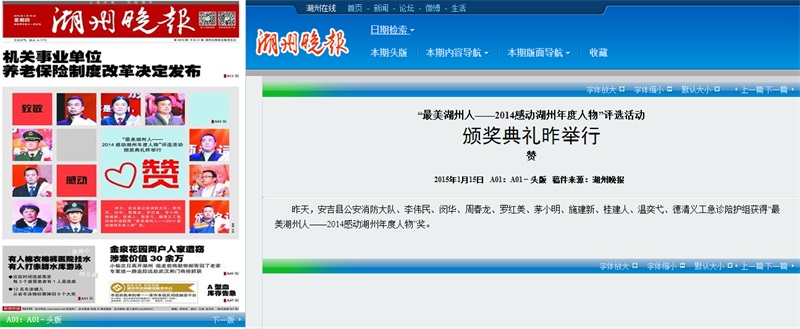 刊播时间:2015年1月15日湖州晚报