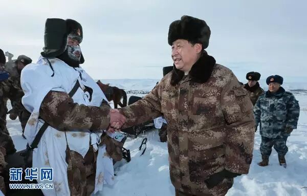 2014年1月,习近平来到内蒙古军区边防某部。走边防巡逻路,慰问一线执勤官兵。