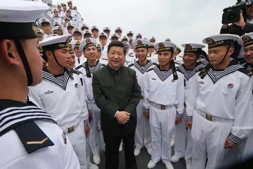 图为:2012年12月8日,中共中央总书记、中共中央军委主席习近平在广州战区考察。这是习近平在“海口”舰上视察时,与水兵亲切交谈。