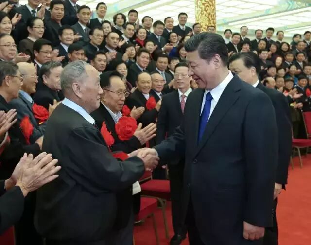 图为:2014年11月26日,党和国家领导人习近平、刘云山、张高丽等在北京人民大会堂会见全国离退休干部先进集体和先进个人代表。