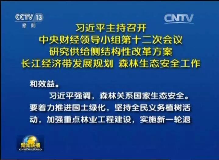 会议分别听取了国家发展改革委、财政部、住房城乡建设部、人民银行、国务院国资委关于去产能、去库存、去杠杆、降成本、补短板的8个工作方案思路的汇报,听取了国家发展改革委关于长江经济带发展规划纲要的汇报,听取了国家林业局关于森林生态安全问题的汇报。领导小组成员进行了讨论。