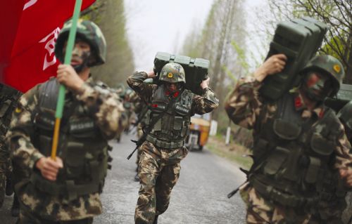 昨天下午,武警湖州支队特战排战士们正进行负重急行军训练。为护航G20峰会,武警湖州支队正在进行为期一周的“魔鬼”训练,通过超负荷训练来检验和锻炼战士们的技战术水平和意志品质。