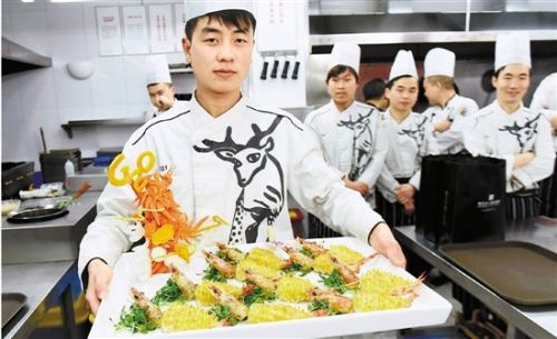 3月22日,参赛厨师将刚制作完成的一道佳肴麒麟虾端离厨房。当日,“武林杯”杭帮菜技能大赛在杭州举行。本次厨艺大赛围绕“服务G20杭州峰会"为主线,以“绿色、新鲜、健康”为主题。