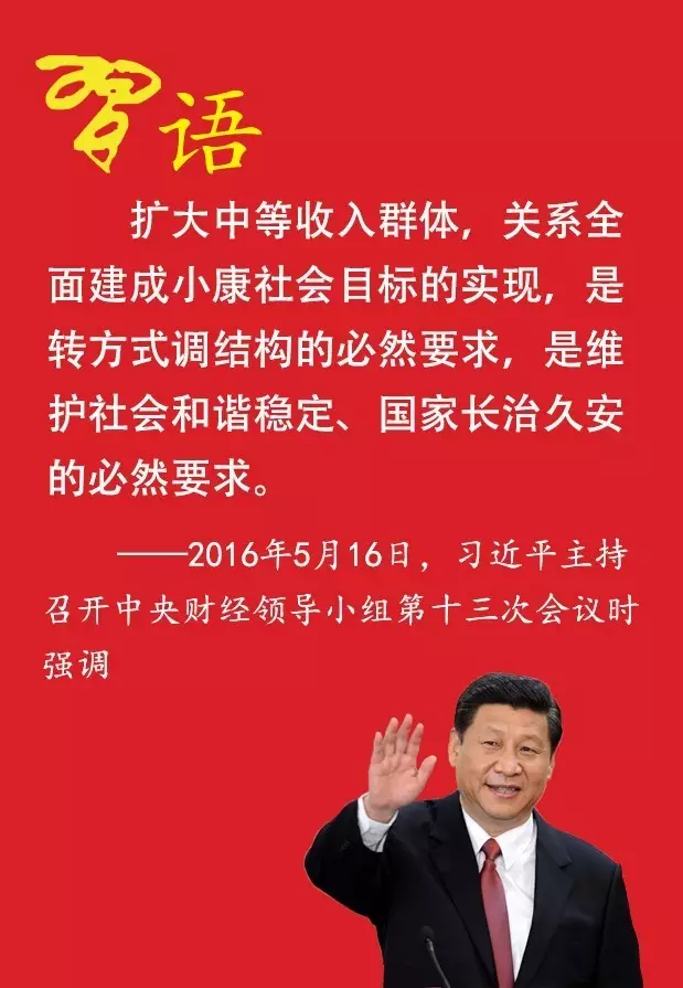 扩大中等收入群体,关系全面建成小康社会目标的实现,是转方式调结构的必然要求,是维护社会和谐稳定、国家长治久安的必然要求。