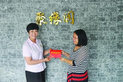 近日,来自河北的新居民党员王景芝(左一)在其就职企业“聚缘阁”,收到了吴兴区织里镇党委的第一张“党员政治生日卡”。时下,该镇在“两学一做”学习教育中,全面推行“党员政治生日”制度,让党员接受红色洗礼,重温入党誓言,坚定政治信念,牢记党的宗旨,树立新的形象。