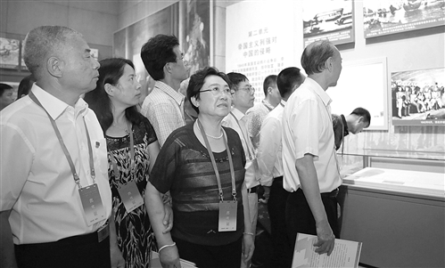 6月30日,全国“两优一先”代表在国家博物馆观看《复兴之路》展览。在北京度过党的第95个生日,受到党中央的表彰,对每一位全国“两优一先”代表来说,都是难忘的经历。 新华社记者 殷 刚摄