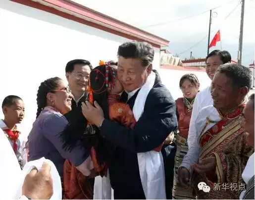 5岁的次央拉姆,一位可爱的藏族姑娘。她落落大方地说,习爷爷好,习爷爷我爱你。总书记抱起她来,轻轻亲吻她的脸颊:“好好学习,健康成长!”
