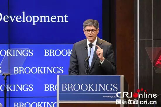美国财政部长雅各布·卢在华盛顿就G20杭州峰会发表演讲(摄影:吕晓红)