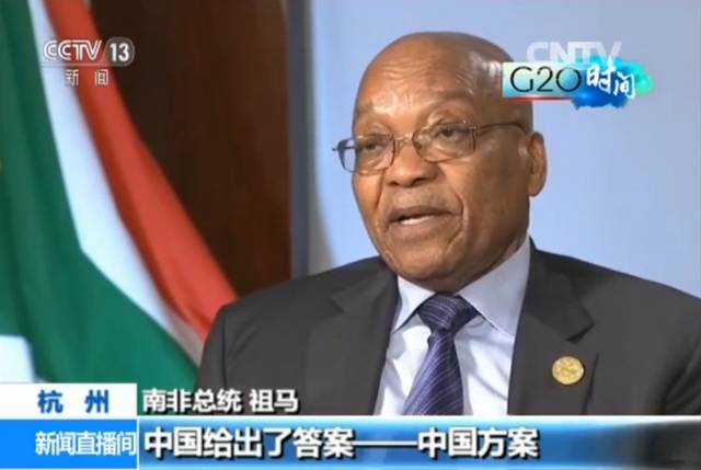 南非总统祖马表示,作为非洲国家的代表,他很赞同G20杭州峰会上习主席提出的全球治理的中国方案,他认为这不仅会促进非洲经济的增长,也为全球经济增长做出贡献。