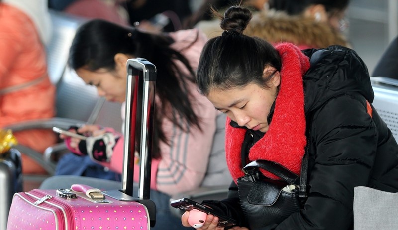 随着春运大幕的拉开,候车厅里的旅客们也只能用低头看手机这样的方式打发等车时间。在安徽淮北火车站候车厅看到,熙熙攘攘的大厅里,坐在座位上的半数旅客都低着头摆弄手机。