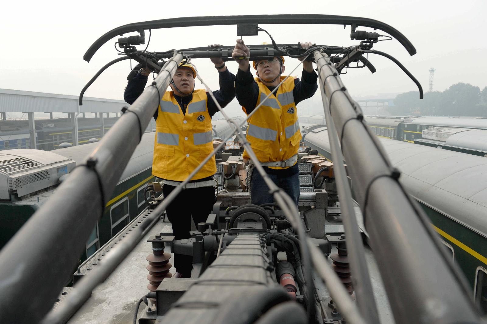 日前,成都供电段接触网检测车间工作人员在接触网综合检测车上忙碌地调试检测监测设备,为2017年春运提供保障。