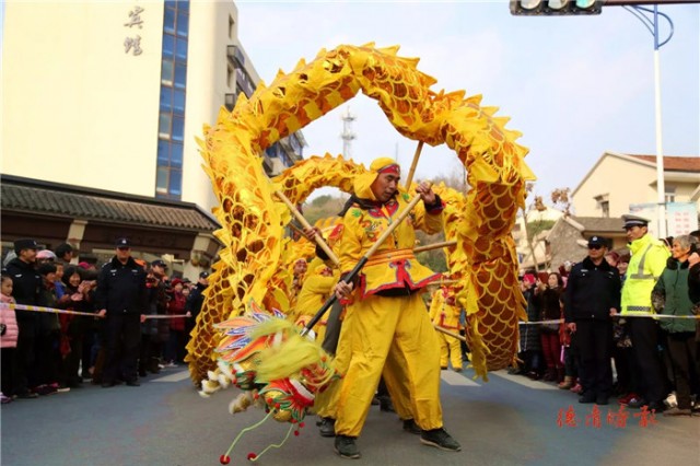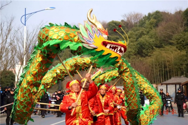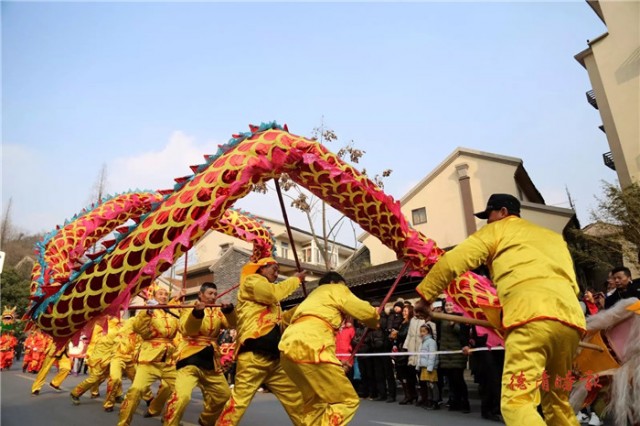 众所周知,德清县有三大庙会,而一年中最早举行的就是乾元镇乾龙灯会。每年正月,乾元镇以及周边居民都在期待这场热闹的传统年俗活动。 浙北乾龙灯会,是德清乾元镇的传统年俗活动,在2009年被列为浙江省省级非物质文化遗产。今年的活动更是热闹非凡,桑叶龙、九曲王龙、金火龙......13条龙陆续出场。乾龙灯会,越舞越精神!人们纷纷拿出手机记录下舞龙表演的精彩。