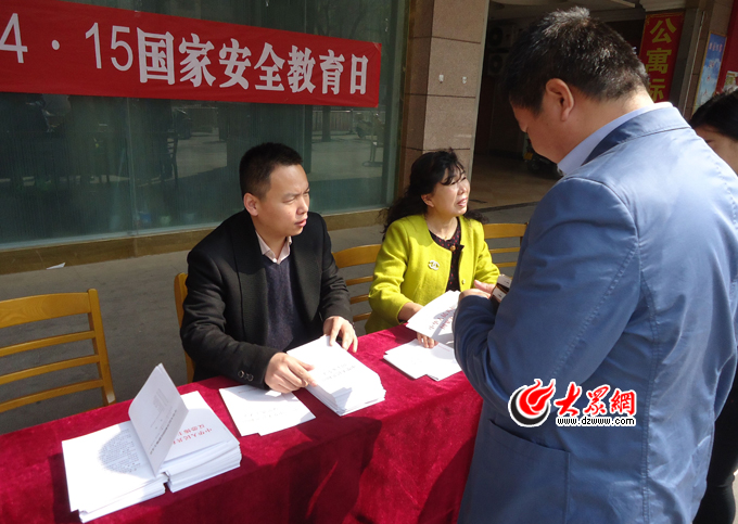 今年4月15日是《中国华人民共和国国家安全法》颁布实施以来的第二个全民国家安全教育日。为推动依法维护国家安全,普及国家安全知识,提升广大公民的国家安全意识,加大对《国家安全法》、《反恐怖主义法》、《反间谍法》等国家安全相关法律法规的普法宣传力度,4月12日,历下区司法局文东司法所联合诚基中心第一社区共同开展了全民“国家安全教育日”宣传教育活动。