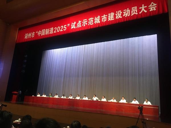 6月1日,湖州市召开“中国制造2025”试点示范城市建动员大会,启动了全国首个以“绿色智造”为特色的“中国制造2025”试点示范城市的建设。4月17日获工信部正式批复同意,湖州由此成为全国首个以“绿色智造”为特色的试点示范城市,也是浙江省继宁波市之后第二个“中国制造2025”试点示范城市。
