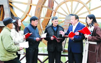 3月21日上午,刚参加完十三届全国人大一次会议的全国人大代表、德清县阜溪街道五四村党总支书记孙国文,第一时间来到村里的五四宪法公园,通过现场讲解、问答等方式,向村“两委”班子成员和群众代表传达全国两会精神。