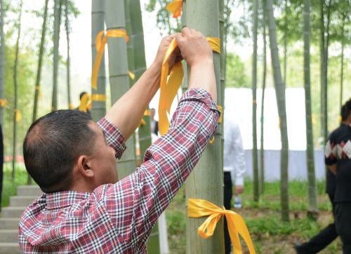 黄色气球不断飞升,寄托着思念的黄丝带在竹林间飘扬,家属们双手合十相伴祈福……伴随着悠悠琴声,4月2日上午,安吉县第四届“竹之韵”生态安放仪式在安吉龙山源生态竹林内举行,12位逝者的骨灰入葬于此,将永驻苍翠竹林。