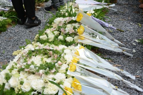 没有鞭炮、冥钞、祭品,仪式现场,只有绿色的竹林、清脆的鸟鸣与和煦的阳光。殡葬礼仪人员将花篮送至竹之韵生态葬的纪念碑前,随后,他们将逝者的骨灰坛深埋于竹林土壤中。逝者家属上前献花,并在竹子上绑上黄丝带,寄托哀思。“我的姨妈没有子女,生前希望自己的骨灰能通过竹林葬回归自然,今天也是完成了她的心愿。”一位家属表示。