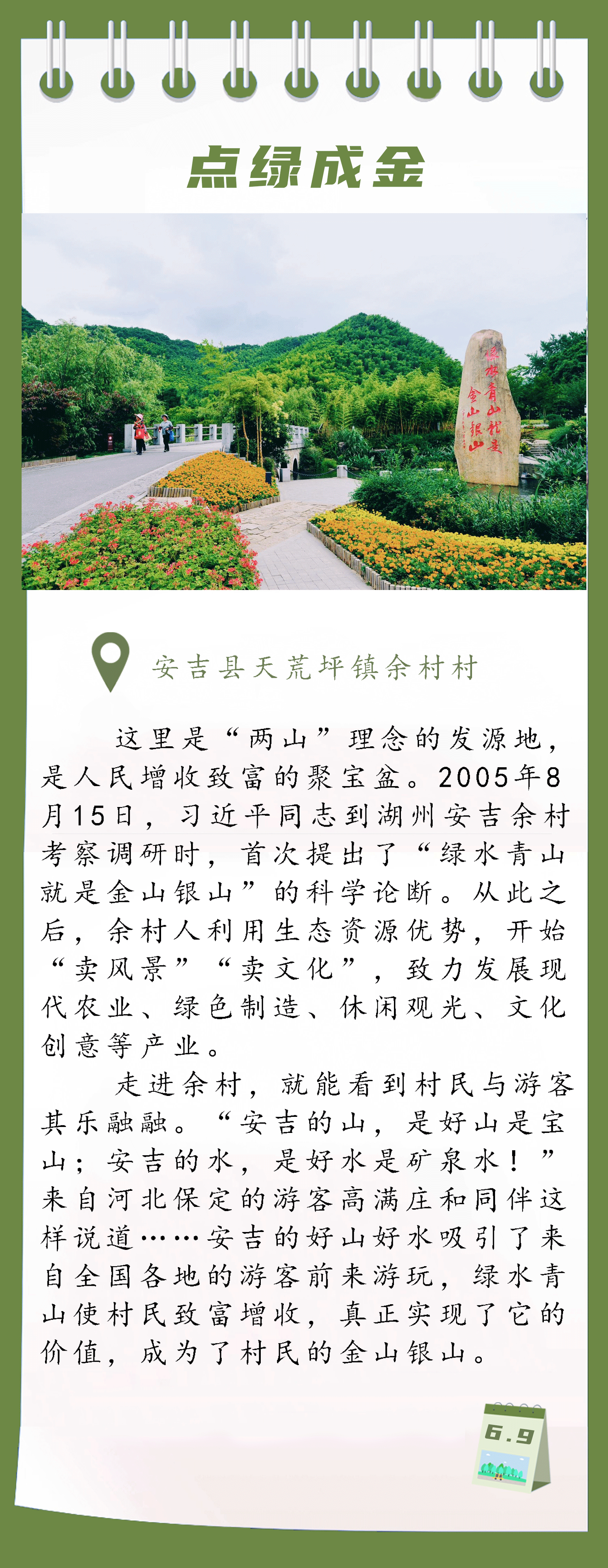 6月9日下午,由浙江省新闻工作者协会暨新媒体专业委员会组织的“打卡‘两山’路——浙江新媒体湖州(衢州、丽水)行”采风活动在湖州市安吉余村正式启动。来自新华社、人民网、央广网等央媒驻浙江站记者以及省内主流媒体代表共50余人,分赴湖州、衢州、丽水开启采风活动。那么,就让小编带你打卡“两山”理念诞生地,看看湖州的绿色发展之路……