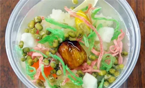 坐标地点:苕溪西路17号现代广场4座一层他家有卖多样汤,绿豆汤等多种冷饮。味道不错,多样汤也很老底子的做法,里面有糯米、绿豆、红绿丝,冬瓜糖,是用冰薄荷水冲的,味道相当好,也是网友推荐度较高的。