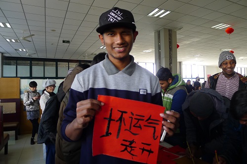 学习中国传统年俗文化,品尝中国美食,留学生们对中国“春节”十分期待。“第一次在中国过年,是一种全新的体验。”来自孟加拉国的摩达告诉笔者,他非常喜欢中国,并选择了湖州作为自己留学的第一站,目前已在师院学习了5个月。“我爱湖州,新年快乐。”他用中文表达了自己的新年祝福。