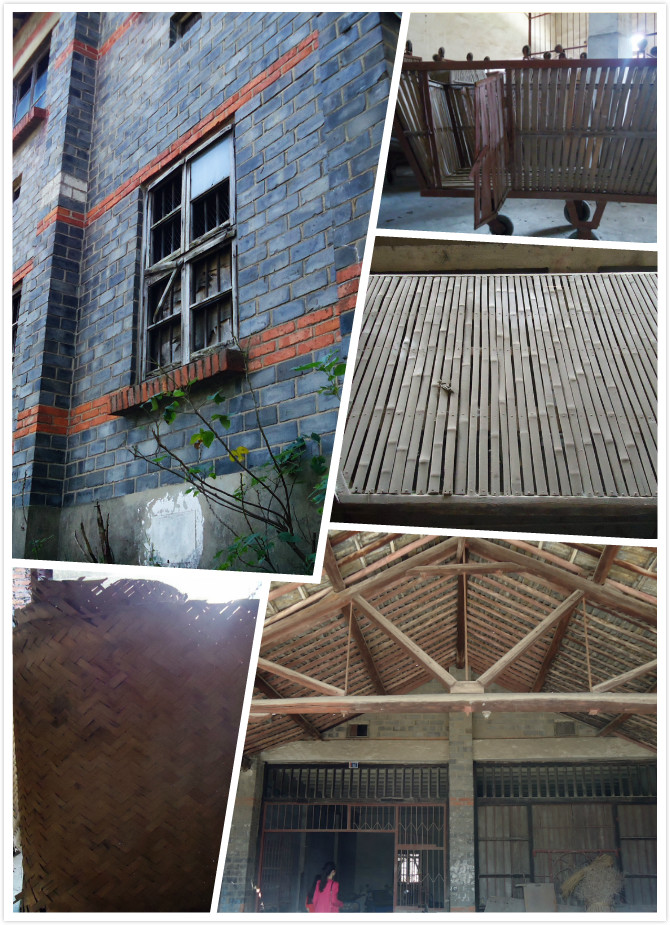 再向东走,见一座青红砖相间的建筑,似古似今,村民告知是建于上世纪五六十年代的茧站。我知道现代茧站的来由,由于蚕茧是重要的工业原料和出口物资,属国家定价的主要农副产品,它的收购、经营管理统一由行政区的丝绸公司负责,丝绸公司委托供销社或其它单位代购,受委托的代收代烘单位就是那个年代的茧站。茧站一般设在过去的公社所在地或重要的集镇。这座茧站为二层楼房,呈“回”字缺口形,人字形屋顶;面阔8间,进深10间。外墙青砖错缝平砌,用二披或三披红砖间隔,是本地难得一见的清水做法。在中空院子内的一层平房,我看到一条旧标语“坚决消灭踏瘪茧,随手拾起落地茧”,重温了熟悉的烘箱等烘茧设施。