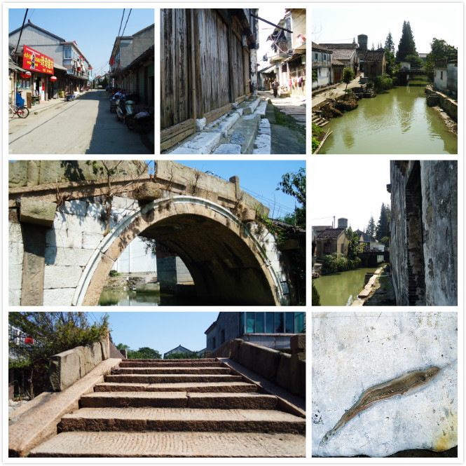 我在古街与沿河水市转角处的一块青皮石板上刚坐下,迎面一位村民告诉我,这块石板上有玉的。我立马站起来一看,光滑的石板上果然有一溜凹洞。“这块玉不知什么时候被江北来的淘宝人挖走了,留下了一条鱼形的凹洞。”在他的指点下,我看清了那个据说被挖走玉之后留下的凹洞,鱼头、鱼眼、鱼尾甚至连鱼鳍的形象都活灵活现。我反复端详,越看越像一条太湖的鱼,愚见似乎不是人为的,而是天然神斧所为,越想越对义皋市集的神秘感和沧桑感浓了许多。我揣测,这里过去也许是一个市集,就是现代意义上的城市,来往的大多是匆匆过客,你方唱罢我登场。而真正意义上的以血缘聚居、传承有序的古村落在沿太湖边的其它村,一直听说那里还保持着历史古村落的风貌,但是否具有文化、科学、经济、社会等多方面功能,还有待于能人贤士进一步考证。