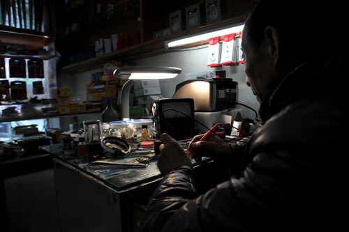 分秒之间看技术。采访间隙,一位老人前来更换手表电池。简单地询问后,於年年便用手中的一柄尖嘴镊利索地撬开后盖,然后重新定位指针、粘胶,再装上表盖、核对时间。整个过程行云流水,不到30秒便完成了电池装换。“修钟表是一个发不了财却永远不会没饭吃的行当。” 於年年告诉记者,跟钟表打了近40年交道,上海、三五、钻石、宝石花、梅花、钟山、英纳格等品牌都见过,修过的钟表已不计其数。除了修理钟表,如今於年年还经常为街坊邻里修理电子秤、老花镜以及各种生活小配件。他表示:“只要掌握了技术,东西坏了照修不误。”