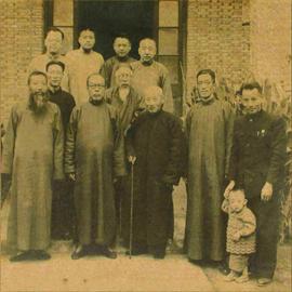 1947年,西泠印社四十周年印人书画展览会后,徐克芳(右一)与唐醉石、丁辅之、王福庵、韩登安、方介堪、唐云等在杭州自家门口合影朱炜