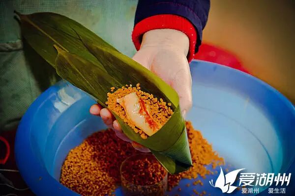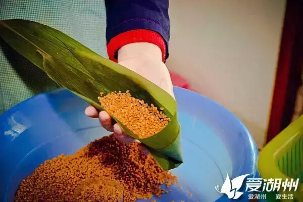 金庸先生的笔下也处处是湖州粽子。《鹿鼎记》写道:浙江湖州所产粽子米软馅美,天下无双。扬州湖州粽子店,丽春院中到了客人,常差韦小宝去买。粽子整只用粽箬裹住,韦小宝要偷吃原亦甚难,但他总在粽角之中挤些米粒出来,尝上一尝。自到北方后,这湖州粽子便吃不到了。 湖城的陆阿姨是包湖州粽的好手,她曾将自己包的粽子送给亲戚,这一送可是“出名”了,亲戚转送给朋友,朋友吃了后追着陆阿姨预定了!就这样,陆阿姨牌“湖州粽”的名气被传开了,就连山东的朋友们都非常喜欢吃。 小爱找到了陆阿姨,让她来介绍一下,正宗的湖州粽子究竟怎么包才够味! 别看湖州粽简单,花样不多,规矩却是非常大的,让小爱一一说来! 粽叶需精选鲜嫩的绿竹叶,长、宽适中,必须先用开水浸泡,后放入清水中浸泡一个晚上,然后再在清水中清洗4-5遍,就可以啦! 湖州粽最大的特色就是秘制鲜肉粽。肉的取材很讲究,陆阿姨今天要用料酒、盐、糖、鸡精和酱油搅拌腌制过的五花肉做粽子馅,喜欢吃甜的微友可以放红豆沙或蜜枣做馅。 取两张浸泡好的粽叶,正面向上摊开,放入一半浸泡过的糯米,再放上肥瘦相间的两条块腌制好的五花肉,再覆盖一层糯米,一同包裹。 将包好的粽子放入开水中,水必须浸过粽子,大火煮的过程中,酱油、盐、糖和料酒综合起来的鲜味会慢慢充盈整只粽子。此时糯米粒黏糯至极,肥肉开始融化在糯米中,不时从锅里飘出香味。 告诉大家一个秘密,一般冷水煮粽子,需要的时间是1小时以上,才能将粽子里的料渗透到糯米了。而陆阿姨告诉小爱,如果想吃更有味道的粽子,只要放入开水中,用高压锅煮上15分钟就可以啦! 哇哦!色、香、味俱全,咸粽呈酱黄色,肉质鲜嫩,油光闪亮。肥肉液已融化化在糯米中,在原料本身混合香之外,还夹有竹叶香,馅心和糯米配合独特,满口肉脂香浓,也丝毫不觉肥腻,吃起来十分香滑可口。 煮熟冷却好的粽子,必须立刻放入冰箱的冷冻室里,亲们嘴馋的时候,再拿出来煮即可。