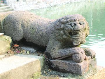 江南小镇旁水楼阁,大都是扁担横街的格局,织里老街自然也不例外。古时,东西向的织溪上架有许多座石桥,自西而东依次为:单孔石拱宝镜桥、三孔石梁妙音桥、睦嘉桥、秋稼塘桥,连接起南北两岸的长街,还有东西向的单孔石拱虹桥。上世纪六、七十年代,作为原织里公社的驻地,老街势必要进一步地发展,于是,在建起粮库、茧站、卫生院、影剧院的同时,就得拓宽河道拆除旧桥,再建起新式水泥长桥。如今,街市中心的水泥桥两侧,还保留着睦嘉老桥遗留下的两对石狮,卧狮原在桥头起到抱鼓石的作用,武康石雕凿,憨态可掬,用现在的说法就是“萌翻路人”,从形态推断似出自清朝乾隆时期,当属湖州地区古桥石狮子中的上佳之作。无独有偶,在距此地不远的三孔石梁白龙塘桥,抱鼓石也是两对卧狮的造型,所不同的是由太湖石雕凿且形态凶猛,可能年代更久远,只叹地处偏僻的卧狮已被无良分子盗卖他处,现在新雕了花岗岩石狮作为替代,但实言已乏审美价值。