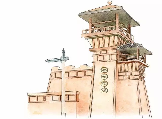走到村口,一座正在建设中的春秋战国时期造型的瞭望塔,带着浓浓的历史气息。从设计图上看到,由瞭望塔和一把高大兵器(戈)这两个极具春秋战国特色的文化元素,组成菰城的村标,仿佛一个时空隧道,让人一下子穿越到千年前。