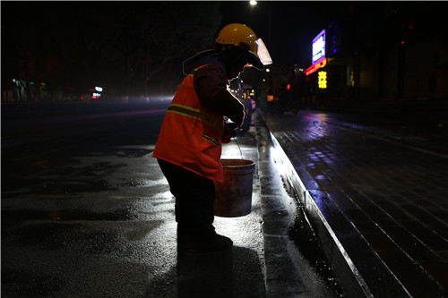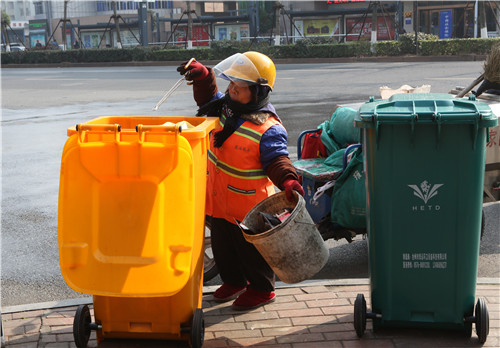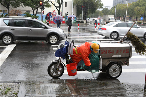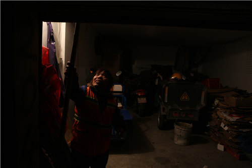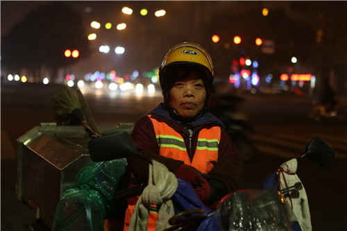 4、迎着朝霞上路,披着星光回家。陈张花用辛苦换来城市的整洁。