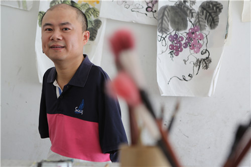 两个脚趾“握”住一支画笔,一笔一划、一点一顿……挥毫间,一幅江南水墨画跃然纸上。 2001年,归晓峰在南浔古镇景区内开了一家书画工作室,每天作画、卖画,生活充实而平静。“做自己喜欢的事,还能养活自己和家人,这就是我的梦想。” 归晓峰特别珍惜眼前拥有的简单幸福。