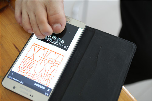 6、归晓峰的脚趾能娴熟地使用手机。借助微信,他可以和全国各地的书画爱好者学习交流。
