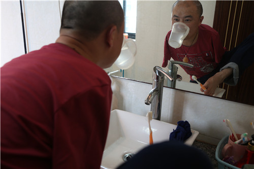 7、归晓峰能用脚刷牙、洗脸。归晓峰的生活基本能自理。
