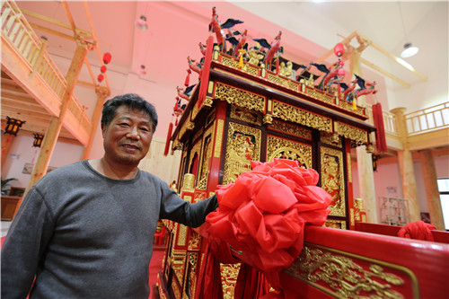 1、这是郭金贤最为得意的作品,16抬雕花木轿。做工精美,气势不凡。