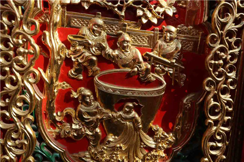 2、雕木花轿融合了浮雕、透雕、圆雕等雕刻技法及贴金、髹漆、彩绘等传统工艺,让人感受到传统技艺的精妙绝伦。