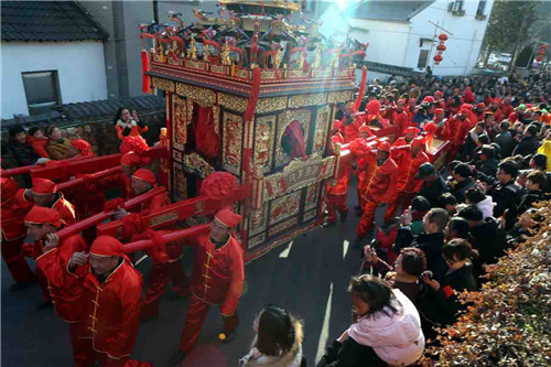 3、正月十五,当地村民抬起这顶花轿,人山人海,很是壮观。
