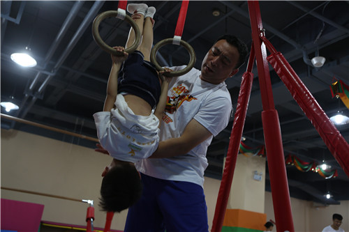 2、黄拥军希望越来越多的人参与体操运动,这才是最大的快乐。为了推广“快乐体操”理念,黄拥军会亲自辅导孩子们练习。