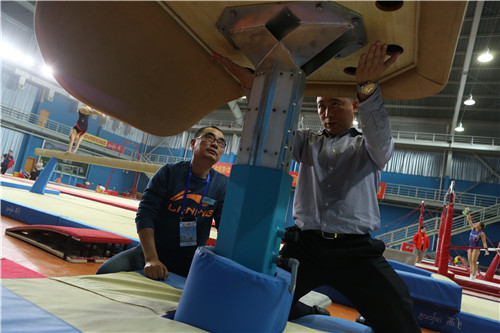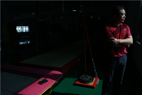 3、每遇大型赛事,黄拥军都会亲自上阵服务,因为他是运动员,他对体操器材有着更深刻的体验。