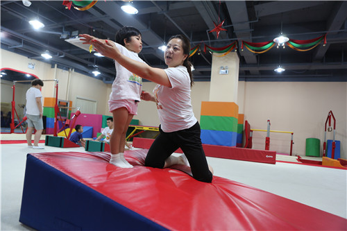 5、黄拥军妻子曾是国家体操队的运动员,妻子现在是他在“快乐体操体验馆”最得力的助手。