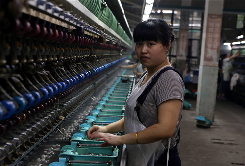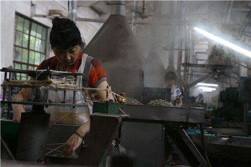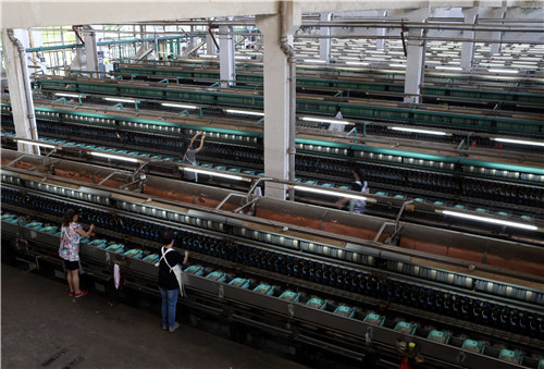 9、夏天,缫丝车间温度更是高达摄氏40多度,像个桑拿房。以前立缫,一个人管20绪,现在自动缫,一个人要管70~100绪,加上8小时的巡动,辛苦程度可想而知。