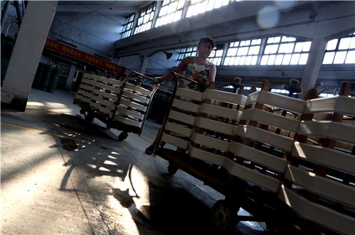 8、50岁的陈桂香正在搬运复摇烘干好的生丝。自20岁进厂,陈桂香30年只干这项枯燥而重复的事。 她不知道自己退休后,还有谁愿意接下自己手中的活。