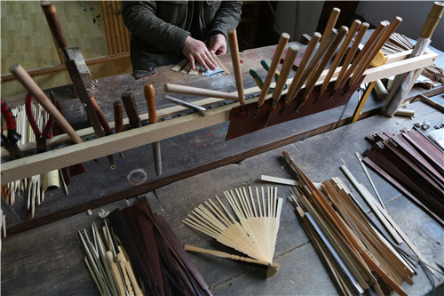 3、夏焕荣的制扇工作台。