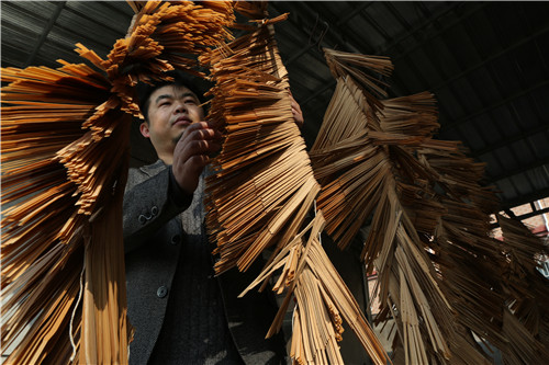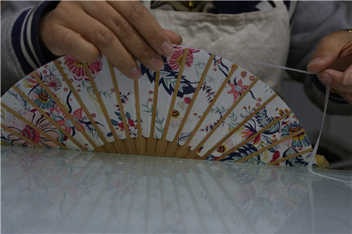 5、每把扇子都要精益求精,夏焕荣对即将完工的扇子还要仔细检查。