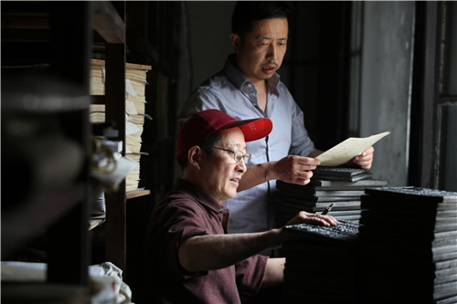 让郑兴宝欣慰的是,退休后儿子郑宗男接替他,继续着这份守护责任的同时,也承担了这项耗时持久而重要工程。“大约有15万块雕版,目前修复整理工作已经完成了一半,大约还需三四年能全部完成。”郑宗南告诉记者,现在嘉业堂有7位师傅从事修复雕版的工作。这些尘封了百年的雕版,如今在他们手中“复活”。记者见到,一名印刷师傅小心地将清洗阴干的雕版平整地放在版台上,然后均匀地涂上墨汁,再拿起一张宣纸覆盖在雕版上,用毛刷细致地来回刷扫,小心地揭起宣纸,一页拓上文字的宣纸就制作完成了。这些散装书页再经过整理装订,就成了重新面世的影印线装本。