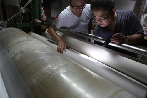作为国家级非物质文化遗产项目代表性传承人,周康明终究让濒临失传的工艺得以延续。儿子周树盛逐渐接手,承接着周边18家绫绢厂的矾绢加工业务,延续着绫绢织造的传奇。“做矾绢的就只有我们一家了,不能辜负了祖辈们的技艺。”周树盛说。