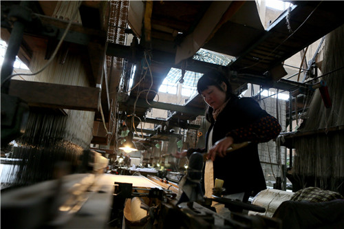 2、多少年来,周康明始终以一丝不苟的态度对待他亲手织造的每一匹绫绢。