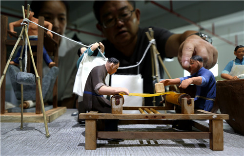 6、周康明将绫绢织造技艺的流程制成蜡像向公众展示,形象生动。周康明希望更多人了解这一东方丝织奇葩。