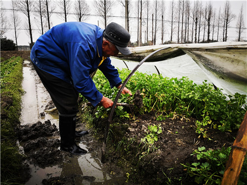 奶爸家的责任田就在一条乡村公路边,奶爸掀开大棚薄膜,娴熟地割着鲜嫩的芹菜。“这块田你种了几年啦?”记者问。“改革开放到现在正好40年了吧,也就自给自足种了40年。 ”
